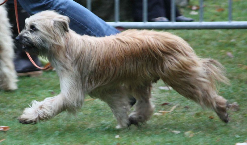 DCC, Excellente construction d'ensemble, ligne de dessus correcte, bonne sortie d'encolure, jolie tête avec une belle expression, Excellent oeil forme et couleur, Excellente avant main, poitrine encore un peu juste, angulation arrière correcte, croupe encore arrondie (le chien est inquiet sur le ring), bonne qualité de poil pour son âge, Très belles allures de profil.